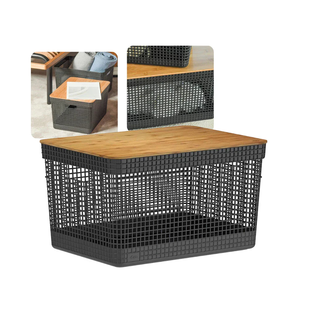 Com capacidade de 20 litros , o cesto oferece um ótimo volume de armazenamento sem ocupar muito espaço físico. Seu design compacto e funcional permite o uso em prateleiras, armários ou diretamente no chão