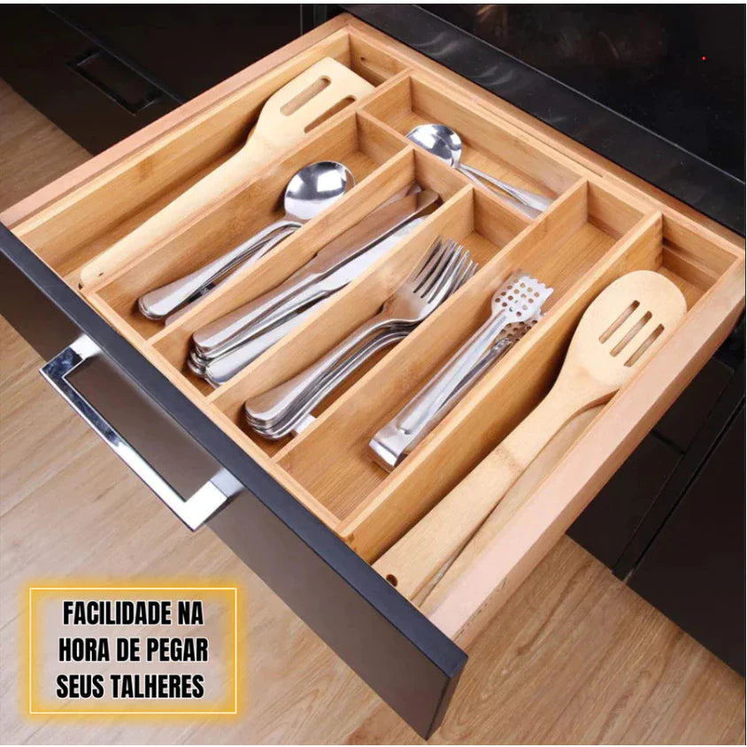 Porta-Talheres de Bambu Extensível – Organização Natural e Elegância para Sua Gaveta